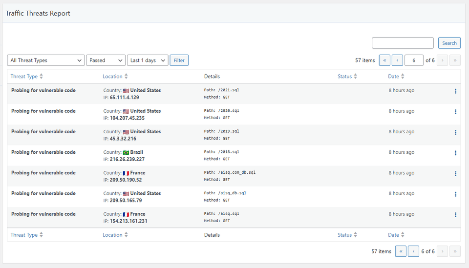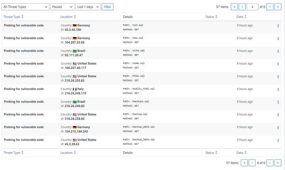 We’ve been placing the threat detection system on other sites as well, and it’s incredible to see how many attempts there are. We only had 1 website with 5 attempts since the 19th.